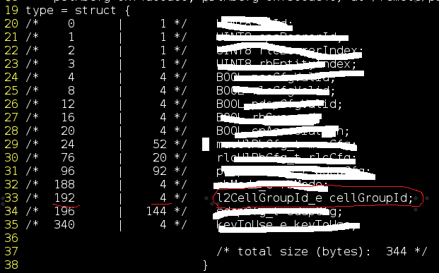 查看code,在211行尝试写一个struct M的成员data, 而data成员之前结构体成员的长度为192.