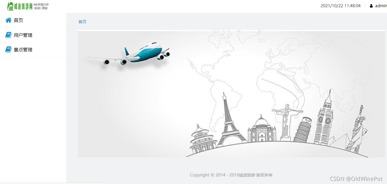 后台就是维护网站展示的内容,添加旅游景点、管理用户、查看用户的搜索记录功能