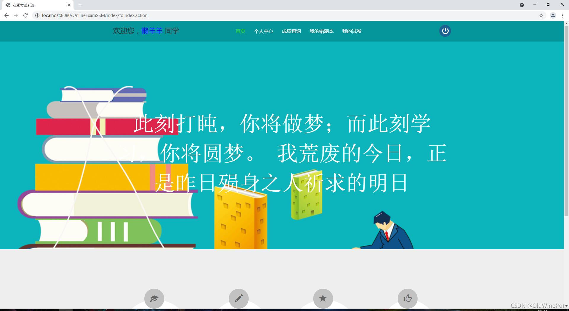 管理员添加试题和发布试卷,学生负责在线考试、在线查看成绩和错题记录列表等。