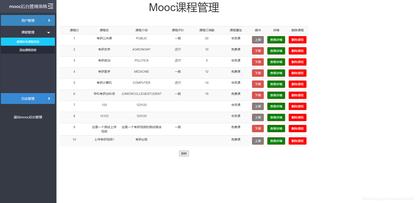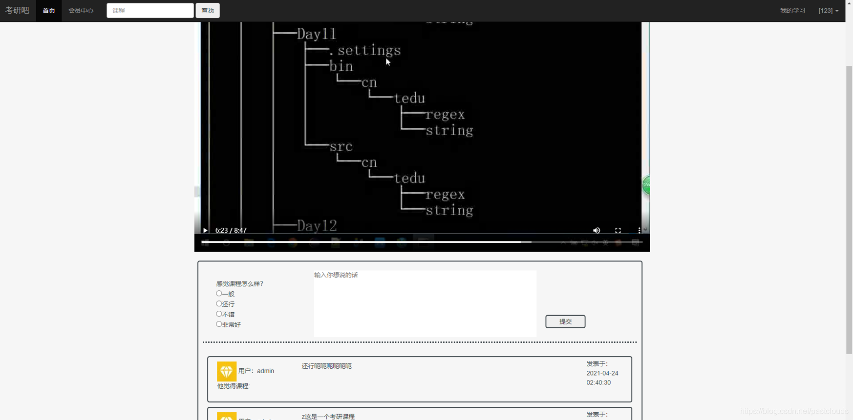 用户管理,课程管理,在线视频观看,评论,会员展示,会员充值等等。