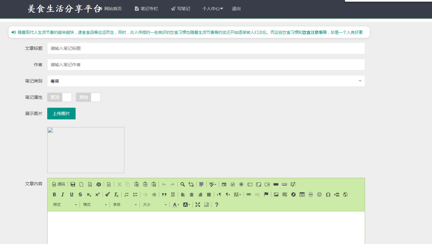 2.美食分享笔记管理:分享笔记列表的展示、添加、修改、删除操作、