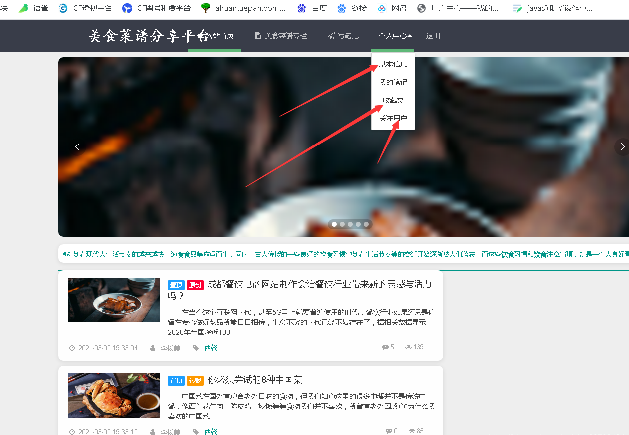 Java项目:美食菜谱分享平台系统设计和实现(java+springboot+mysql+ssm)