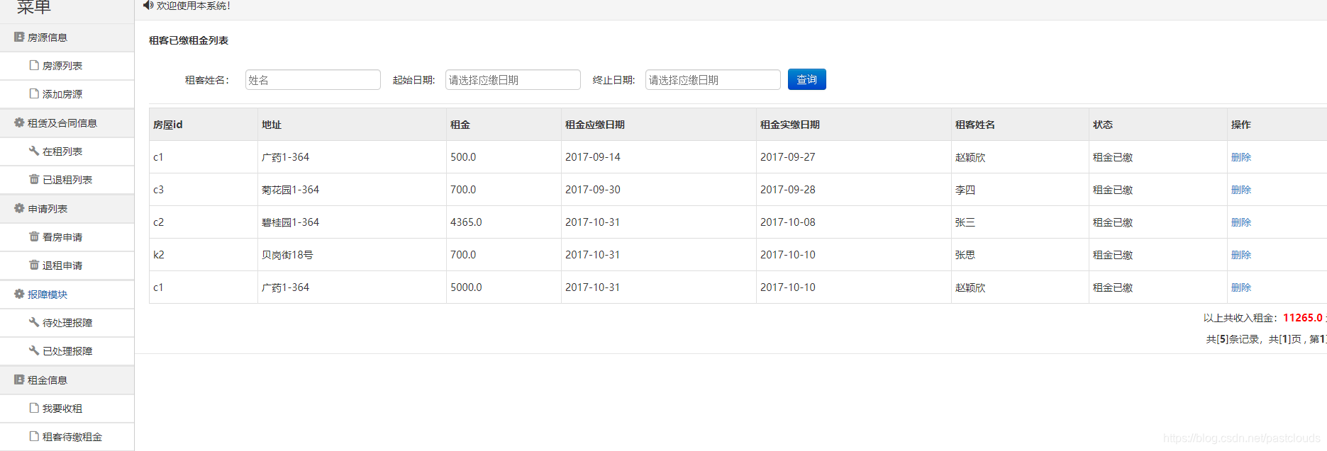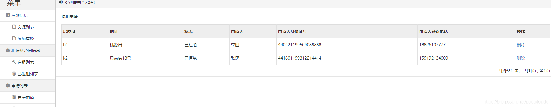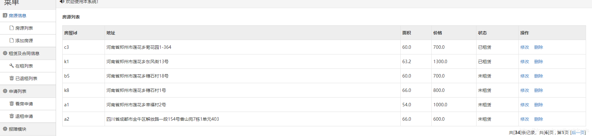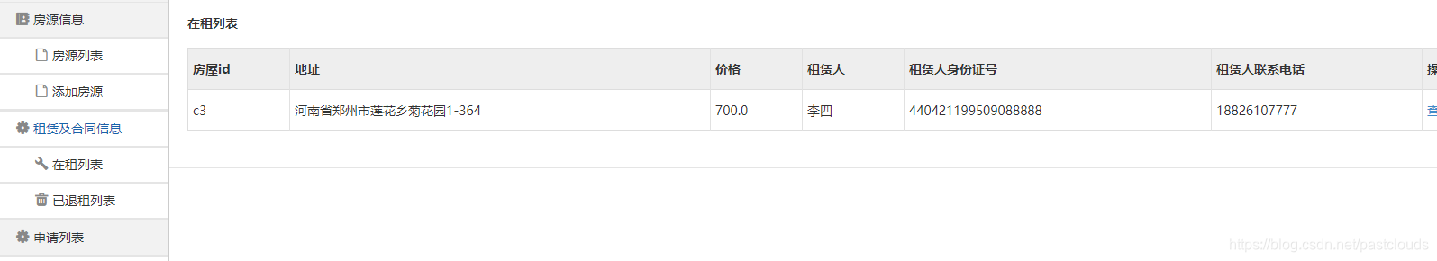 3.租赁合同管理以及在租房源和已退租房源信息管理:
