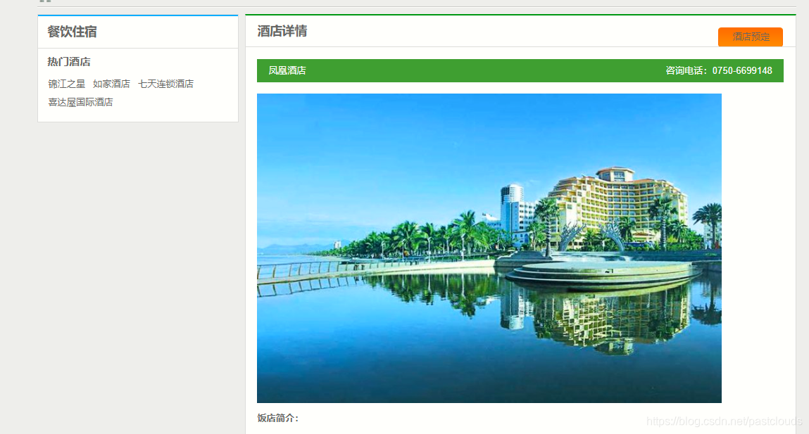 public class HotelController {@Autowiredprivate HotelService hotelService;@Autowiredprivate ScenicService scenicService;/*** 查询全部酒店信息* @return*/@ResponseBody@RequestMapping(value = "/list",method= RequestMethod.GET)public Result findAll(){List<Hotel> all = hotelService.findAll();return new Result(true, StatusCode.OK,"查询成功",all,all.size());}/*** 根据ID查询* @param id ID* @return*/@ResponseBody@RequestMapping(value="/{id}",method= RequestMethod.GET)public Result findById(@PathVariable Long id){return new Result(true,StatusCode.OK,"查询成功",hotelService.findById(id));}/*** 酒店添加操作* @param hotel*/@ResponseBody@RequestMapping(value = "/add",method=RequestMethod.POST)public Result add(Hotel hotel){if(StringUtils.isEmpty(hotel.getName())){return new Result(false,StatusCode.ERROR,"请填写酒店名称");}if(StringUtils.isEmpty(hotel.getImg())){return new Result(false,StatusCode.ERROR,"请上传酒店封面图片");}if(StringUtils.isEmpty(hotel.getAddr())){return new Result(false,StatusCode.ERROR,"请填写酒店地址");}if(StringUtils.isEmpty(hotel.getMiaoshu())){return new Result(false,StatusCode.ERROR,"请填写酒店描述");}hotel.setCommentCount(0);hotel.setStar(0);if(hotelService.add(hotel)==null){return new Result(false,StatusCode.ERROR,"酒店添加失败");}return new Result(true,StatusCode.OK,"添加成功");}/*** 分页+多条件查询* @param searchMap 查询条件封装* @param page 页码* @param size 页大小* @return 分页结果*/@ResponseBody@RequestMapping(value="/search/{page}/{size}",method=RequestMethod.POST)public Result findSearch(@RequestBody Map searchMap , @PathVariable int page, @PathVariable int size){Page<Hotel> pageList = hotelService.findSearch(searchMap, page, size);return new Result(true,StatusCode.OK,"查询成功", new PageResult<Hotel>(pageList.getTotalElements(), pageList.getContent()) );}/*** 根据条件查询* @param searchMap* @return*/@ResponseBody@RequestMapping(value="/search",method = RequestMethod.POST)public Result findSearch( @RequestBody Map searchMap){return new Result(true,StatusCode.OK,"查询成功",hotelService.findSearch(searchMap));}/*** 修改* @param hotel*/@ResponseBody@RequestMapping(value="/edit",method= RequestMethod.PUT)public Result update(Hotel hotel){Hotel hotelById = hotelService.findById(hotel.getId());if(hotelById==null){return new Result(false,StatusCode.ERROR,"该酒店信息不存在");}if(StringUtils.isEmpty(hotel.getName())){return new Result(false,StatusCode.ERROR,"请填写酒店名称");}BeanUtils.copyProperties(hotel,hotelById,"id","img","miaoshu","day","startdate","addr","commentCount");if(hotelService.update(hotelById)==null){return new Result(false,StatusCode.ERROR,"酒店编辑失败");}return new Result(true,StatusCode.OK,"修改成功");}/*** 删除* @param id*/@ResponseBody@RequestMapping(value="/{id}",method= RequestMethod.DELETE)public Result delete(@PathVariable String id ){hotelService.deleteById(id);return new Result(true,StatusCode.OK,"删除成功");}/*** 酒店列表跳转路径* @return*/@RequestMapping(value = "/hotelList")public String hotelList(){return "admin/hotelmanage/hotelList";}@RequestMapping(value = "/hotelAdd")public String hotelAdd(){return "admin/hotelmanage/hotelAdd";}/*** 查询单个酒店* @param model* @param id* @return*/@RequestMapping("/oneAttr")public String One_attr(Model model, Long id){Hotel scenic=hotelService.findById(id);model.addAttribute("oneAttr",scenic);return "page/hotelDetail";}@RequestMapping("/local")public String localRefresh(Model model,Long id) {Hotel hotel=hotelService.findById(id);// Sort sort=new Sort(Sort.Direction.DESC,"star");System.out.println("1111"+hotel.toString());List<Scenic> scenics=scenicService.findByCountryLike(hotel.getAddr());System.out.println("2222"+scenics.toString());Collections.sort(scenics, new Comparator<Scenic>() {@Overridepublic int compare(Scenic o1, Scenic o2) {if (o1.getStart()<o2.getStart()){return 2;}if (o1.getStart().equals(o2.getStart()) ){return 1;}return -1;}});if (scenics.size()>=4){List newList=scenics.subList(0,3);model.addAttribute("scenics",newList);}else {model.addAttribute("scenics",scenics);}return "page/hotelDetail::table_refresh";}