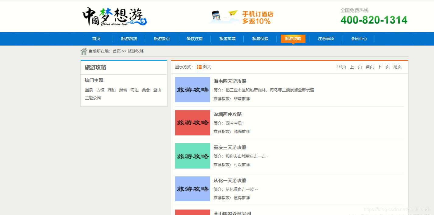 Java项目:旅游网站管理系统设计和实现(java+springboot+jsp+mysql+spring)