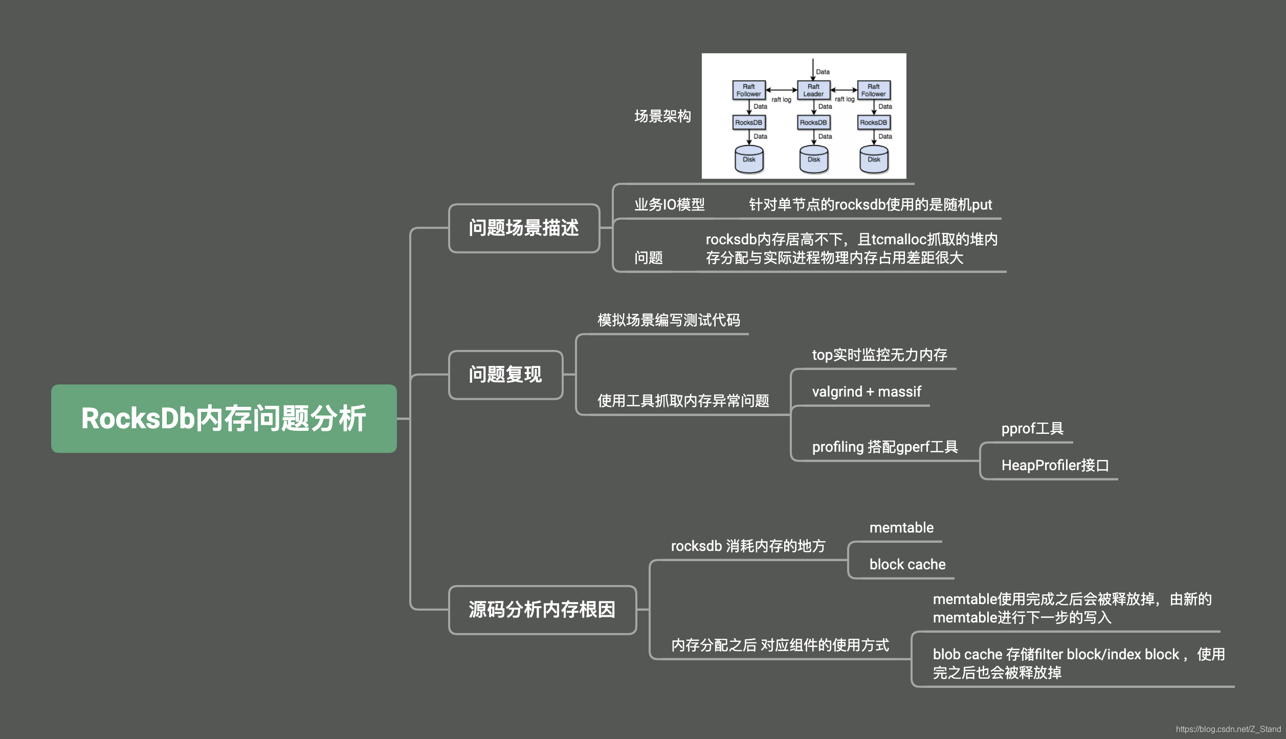 文章目录问题场景描述问题复现编写随机写 测试工具使用工具抓取内存分配过程源码分析memtable逻辑table_cache逻辑总结整体的IO场景到底层的源码分析过程如上导图,接下来将详细阐述具体的过程。问题场景描述 我们的rocksdb作为单机存储引擎,跑在用分布式…