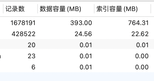 mysql 快捷查询数据库各表占用空间,mysql查看索引占用空间,mysql查看数据占用空间