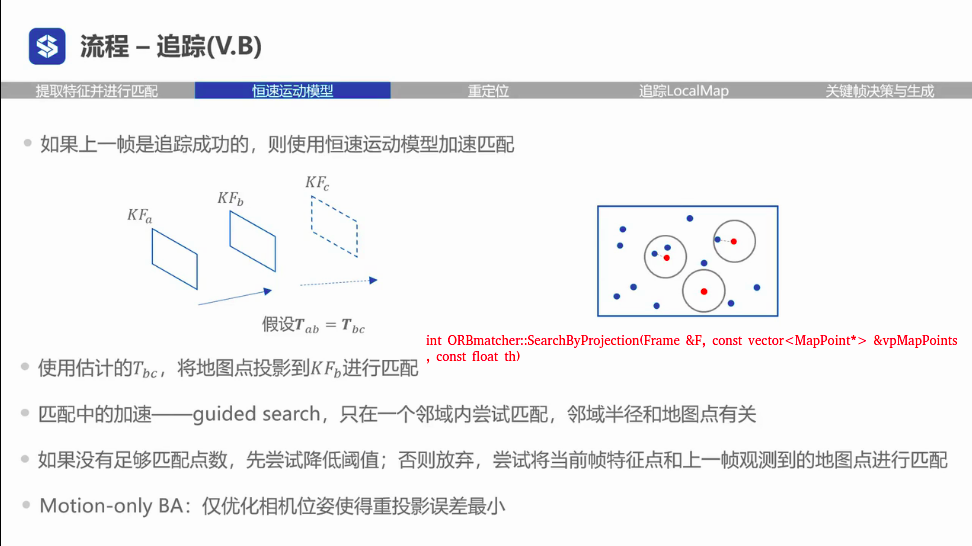 ORBmatcher.cc中的函数,主要实现(1)路标点和特征点的匹配(2D-3D点对)。(2)特征点和特征点的匹配(2D-2D点对)。SearchByProjection的函数重载看得我一脸懵逼。在这做一下笔…