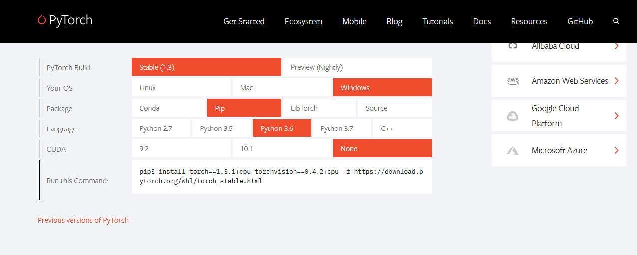 pip3 install torch==1.3.1+cpu torchvision==0.4.2+cpu -f https://download.pytorch.org/whl/torch_stable.html