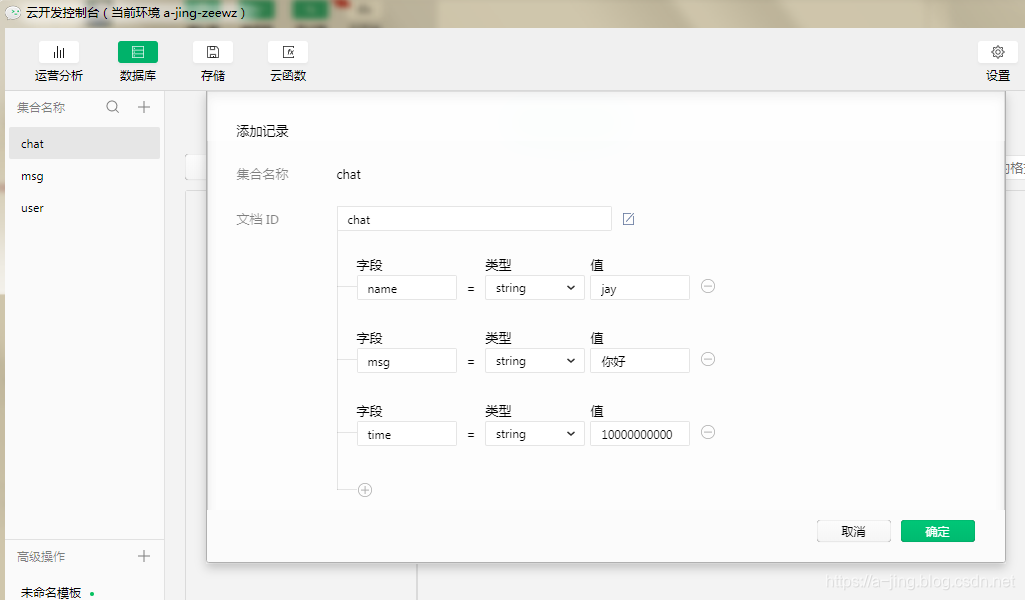 小程序云开发 一开通云开发,给数据库添加一条记录