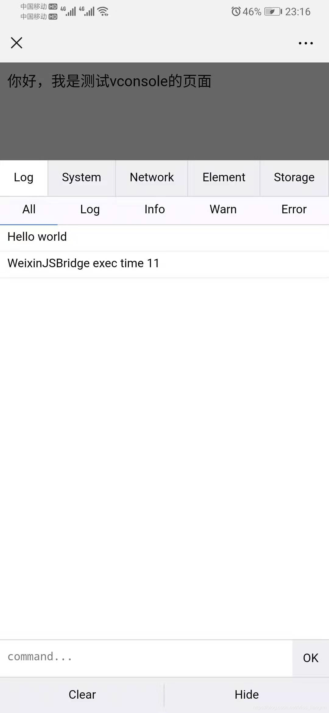 vconsole 调试 查看LOG VUE在手机上调试 手机查看h5的日志
