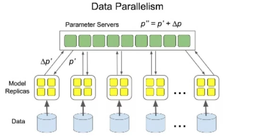 数据并行,即每个计算单元都保留一份完整的模型拷贝,分别训练不同的数据,经过一个Iteration或若干个Iteration后,把各个计算单元的模型做一次同步。这是最常见的深度学习训练方式,好处在于逻辑简单、代码实现方便。