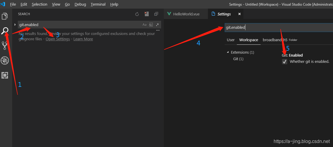 QQ技术交流群 173683866 526474645 欢迎加入交流讨论,打广告的一律飞机票 1.点击IDE左侧的搜索 2.在搜索中输入 git.enabled 3.点击Open Serrings 4.在Settings中的搜索框输入 git.enabled 5.把它下方的三个选项User Workpace broadband-h5(项目名称) 的Git en…