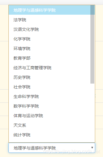 $(document).ready(function() {$.post('http://localhost/shige/home/show_college_major.php','',function(res){$('#eq_num').empty();//清空select,不然每点一次都循环添加一遍数据越来越多res=JSON.parse(res)for (var i=0;i<res.length;i++) {$('.selectpicker').append('<option id="'+i+'">'+res[i].college+'</option>')}$('#eq_num').selectpicker('refresh'); $('#eq_num').selectpicker('render');})});