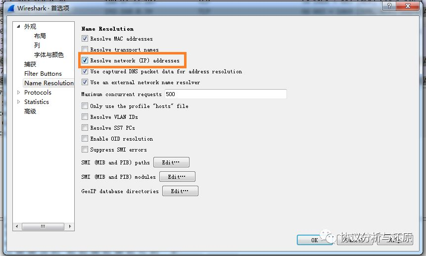 那我们在使用Wireshark进行分析的过程中,是否可以让DNS协议起作用,直接将各个眼花缭乱的IP解析为域名,以提高效率呢?