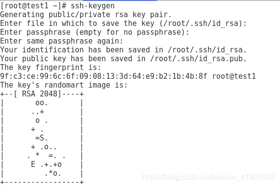 [root@test1 ~]# ssh-keygen //生成公私钥对