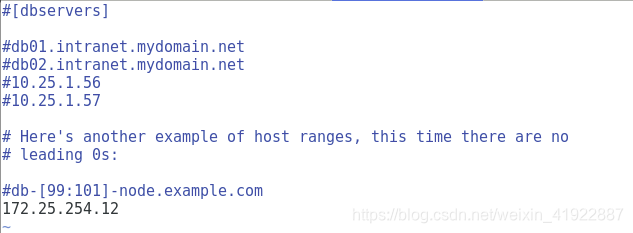 [root@test1 ~]# vim /etc/ansible/hosts //修改配置文件
