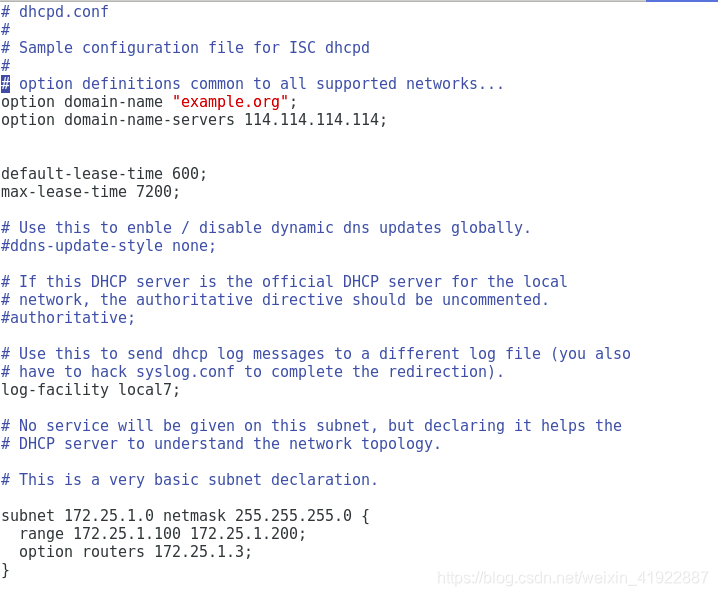 8 option domain-name-servers 114.114.114.114; //客户端可以获得的DNS