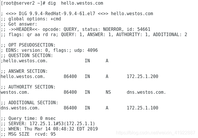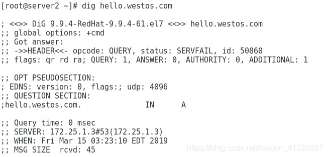 [root@server2 ~]# vim /etc/resolv.conf //将所需测试的主机设置为dns