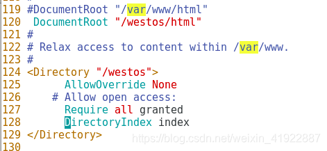 总结:可以看出此时显示的并不是/var/www/html下的index.html网页,而是/westos/html下的html网页。