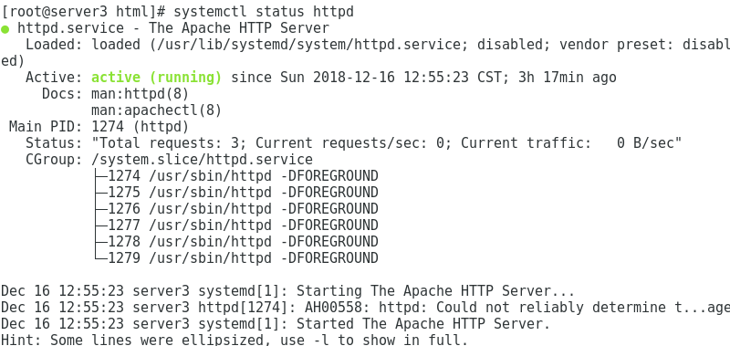 Created symlink from /etc/systemd/system/multi-user.target.wants/httpd.service to /usr/lib/systemd/system/httpd.service.
