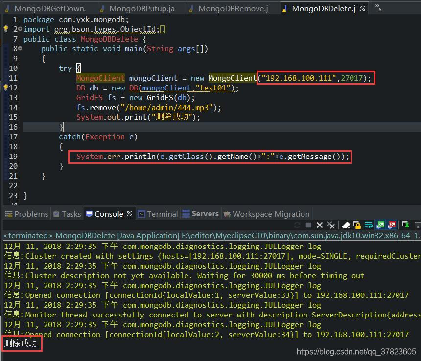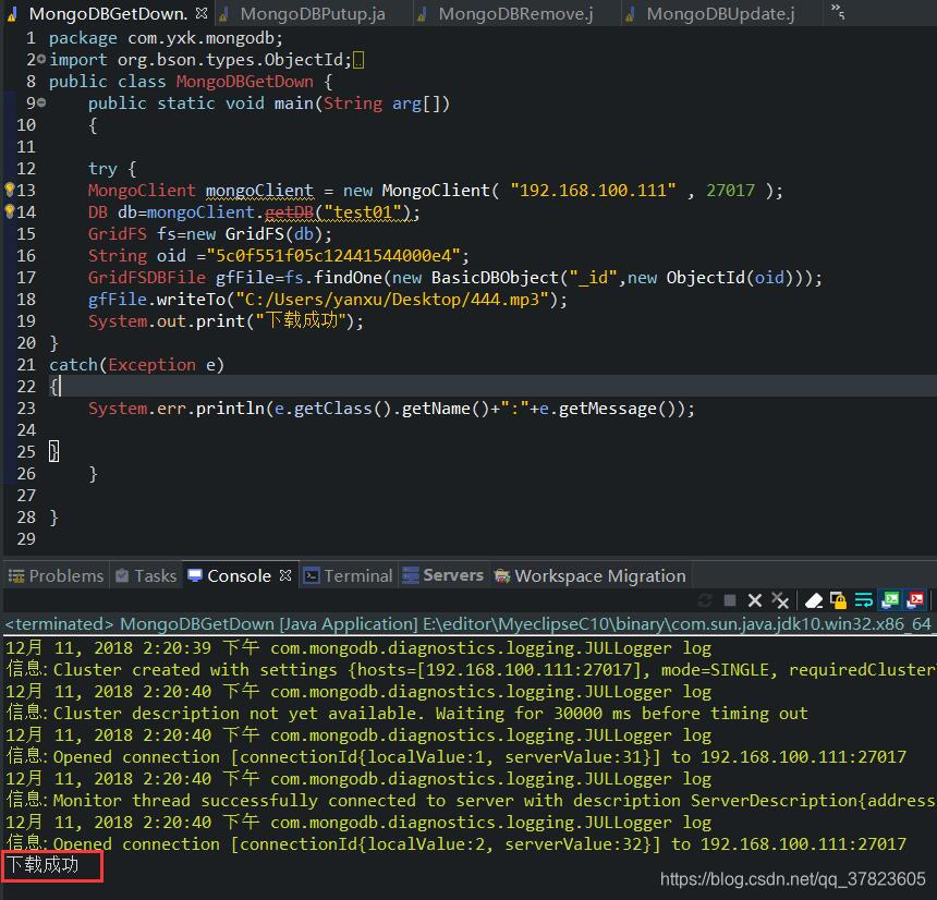 练习七:使用Java完成文件在MongoDB中的上传,下载和删除
