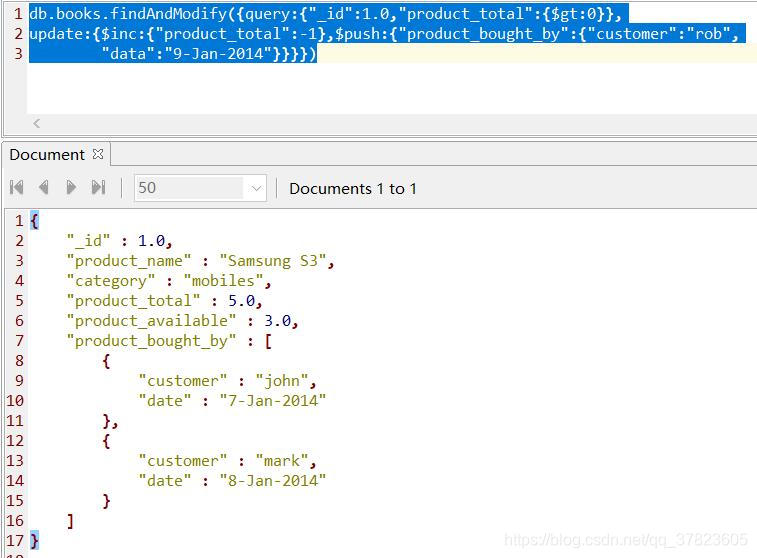 完成原子操作更新,要求product_total>0时可更新product_total递减,且同时添加product_bought_by购买者信息。