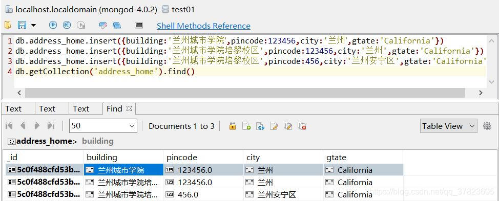 练习二:在test数据库下创建address_home文档,结构如下图;