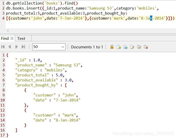 练习三:在自己用户数据库下创建books集合,添加如下数据;