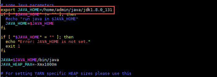 JAVA_HOME=/home/admin/java/jdk1.8.0_131