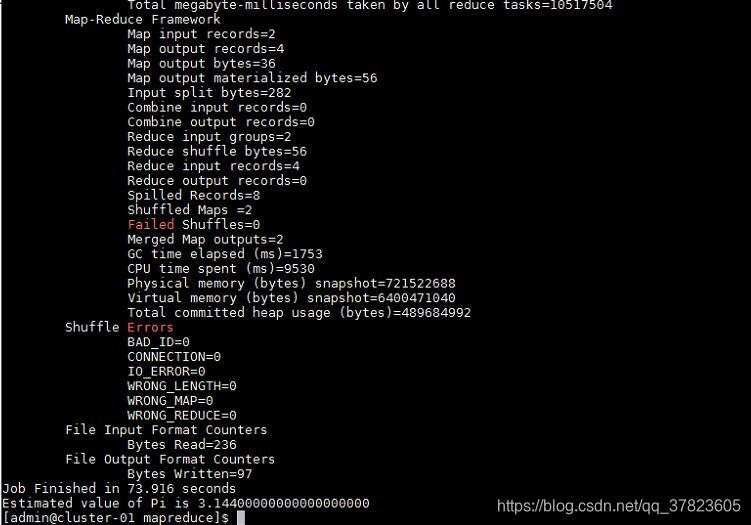 注:该项所有的操作使用专门用于集群的用户admin进行;