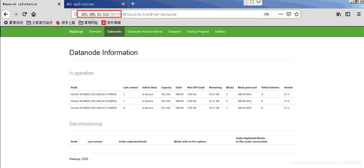 2、使用浏览器访问192.168.10.111:50070,查看HDFS情况