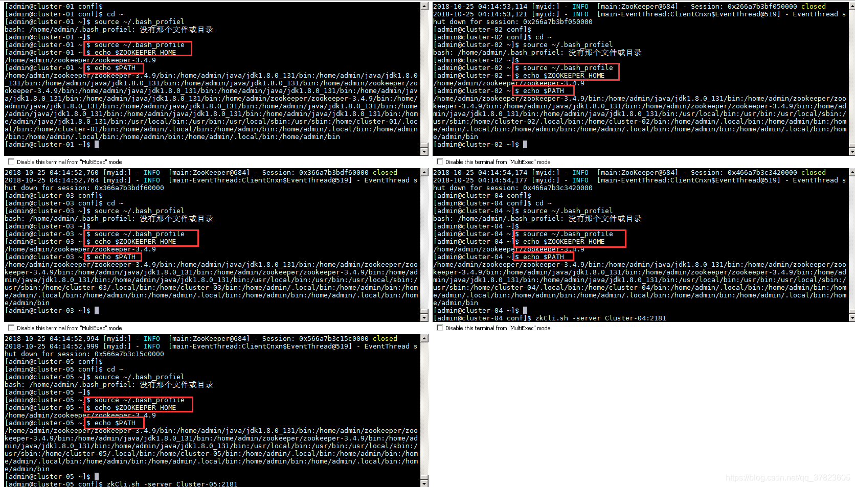 1、由于我在配置过程中使用控制软件同时同步配置五台主机,所以相关安装配置文件都同步配置完成;