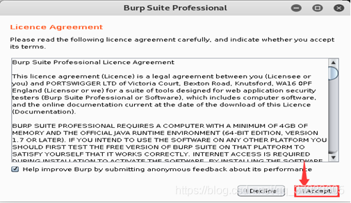 激活Kali系统中的BurpSuite软件;