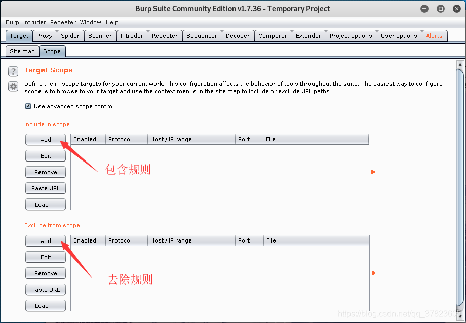 注:Target Scope目标域规则设置,打开“Scope”子选项卡;