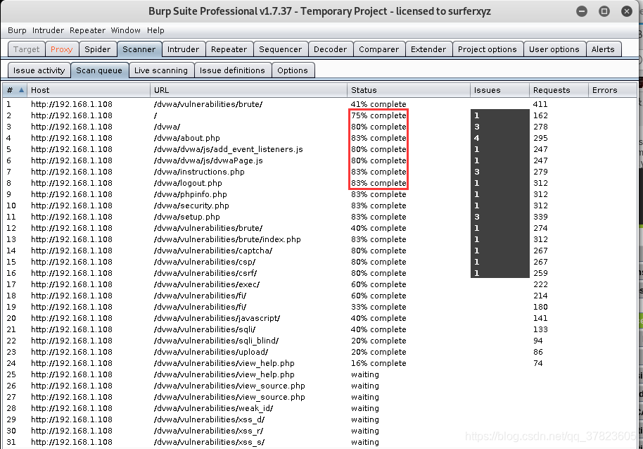 5.1.5、进入“Scanner”选项卡的“Scan queue”子选项卡,查看当前扫描的进度;