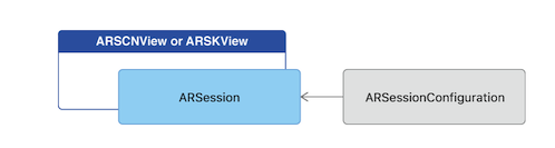 ARSCNView与ARCamera两者之间并没有直接的关系,它们之间是通过AR会话,也就是ARKit框架中非常重量级的一个类ARSession来搭建沟通桥梁的context与session不同之处是:一般与硬件打交道,例如摄像头捕捉ARSession,网卡的调用NSURLSession等使用的都是session后缀。没有硬件参与,一般用context,如绘图上下文,自定义转场上下文等