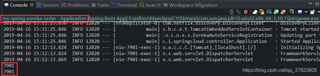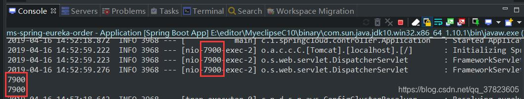 1.4、添加输出语句,在订单控制器类OrderController的查询订单方法中,增加一行执行输出当前实例端口号的语句;