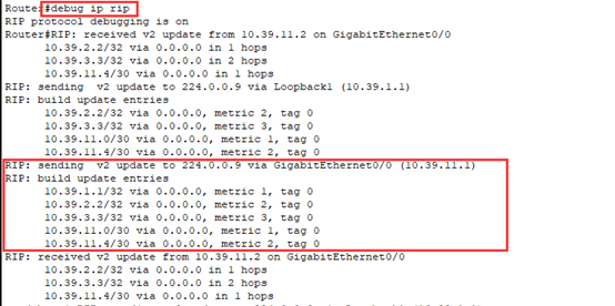 ZXR10(config)#router ripZXR10(config-router)#network 10.39.11.6 0.0.0.3ZXR10(config-router)#network 10.39.3.3 0.0.0.0ZXR10(config-router)#version 2ZXR10(config-router)#no auto-summaryZXR10(config-if)#exitc)在开启水平分割状态下debug ip rip