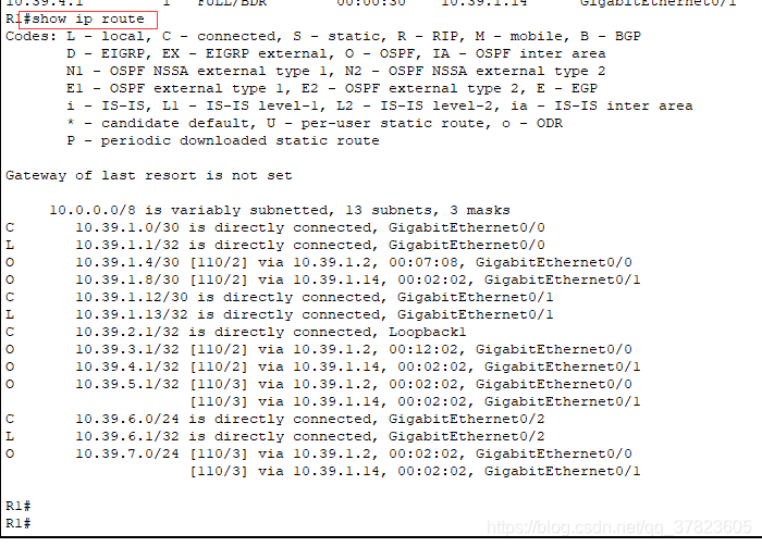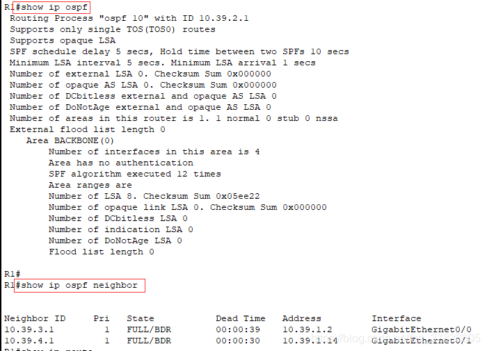 命令:ZXR10#show ip ospf
