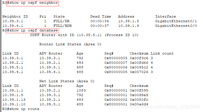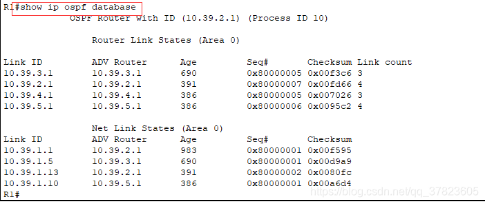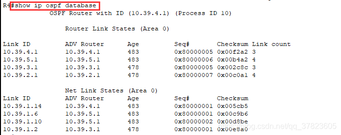 4.5查看各路由器OSPF的链路状态数据库信息;