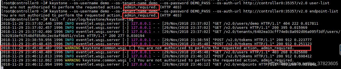 b)验证admin是否有管理权限,如用户、租户、角色、服务、端点;