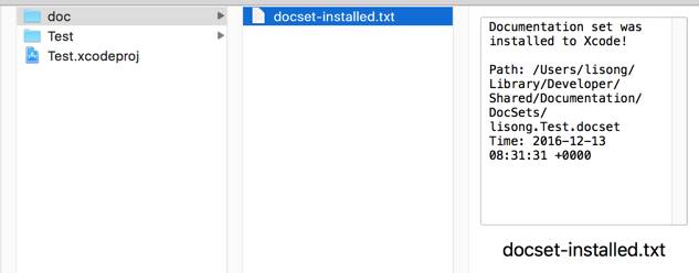 默认会放在~/Library/Developer/Shared/Documentation/DocSets路径下,里面包含html的文档。首先显示生成的Docset的包内容,然后在Contents/Resources/Documents路径下,双击打开里面的index.html可以在浏览器中查看文档了。