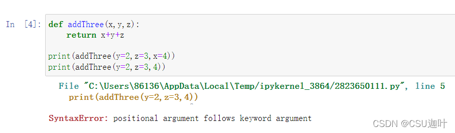 2 调用函数时熟悉的是位置参数,但是也可以用关键字参数,也就是调用时把参数名写出来(可以通过它来改变参数的顺序)。不过貌似系统定义的函数不能用关键字参数,自己定义的才可以。而且,一旦使用关键字参数,后面跟着的就必须也是关键字参数。