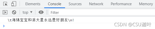 console.log(String.raw`\t海绵宝宝和派大星永远是好朋友\n!`);