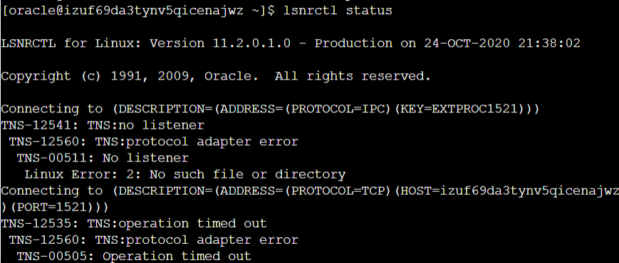 CentOS报错:TNS-12541: TNS:no listener TNS-12560: TNS:protocol adapter error TNS-00511: No listener