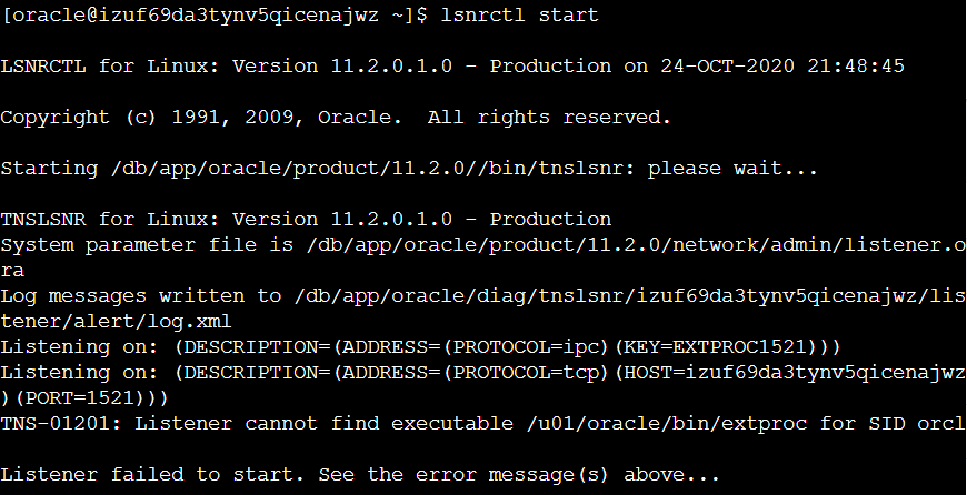 TNS-01201: Listener cannot find executable /u01/oracle/bin/extproc for SID orcl Listener failed to