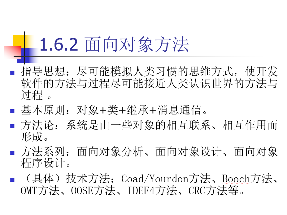 思想起源于上世纪六十年代(和结构化方法一样) 最早的OOPL:Simula67 最纯的OOPL:Smalltalk smalltalk的贡献:它在系统设计中强调对象概念的统一,引入对象,对象类,方法,实…