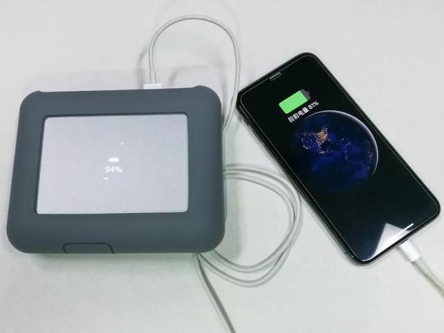硬盘内置了电池组,可作为 USB 充电设备,遇到电子产品没有电的情况时应急使用,这样的设计非常贴心。