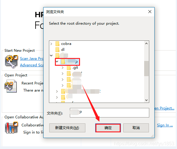 3、选择要扫描的项目目录,点击确定按钮